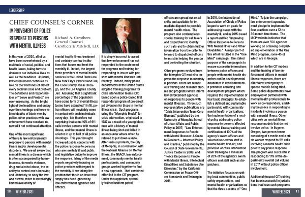 CHIEF COUNSEL ’ S CORNER IMPROVEMENT OF POLICE RESPONSE TO PERSONS WITH MENTAL ILLNESS