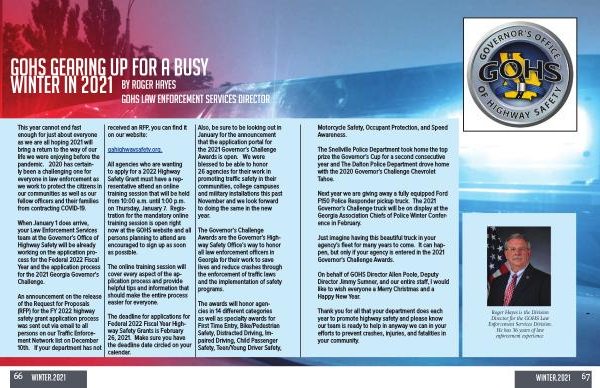 Next year we are giving away a fully equipped Ford F150 Police Responder pickup truck . The 2021 Governor ’ s Challenge truck will be on display at the Georgia Association Chiefs of Police Winter Conference in February .