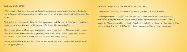 At the end of the recycling period, buttons and paints came out of the box. Students