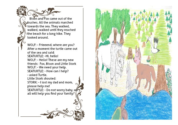 WOLF: - Hello! These are my new friends: Fox, Bison and Little Stork