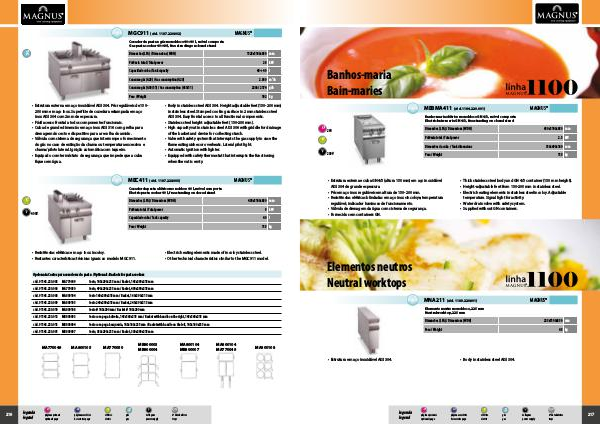 • Estrutura externa e cuba GN4/3 (altura 150 mm) em aço inoxidável