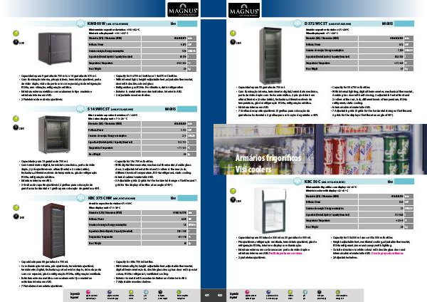 • Com iluminação interna, pés ajustáveis, termóstato ajustável, porta