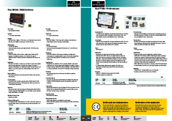 • DIBAL RMS Software allows the connection of the VT-800 with Dibal