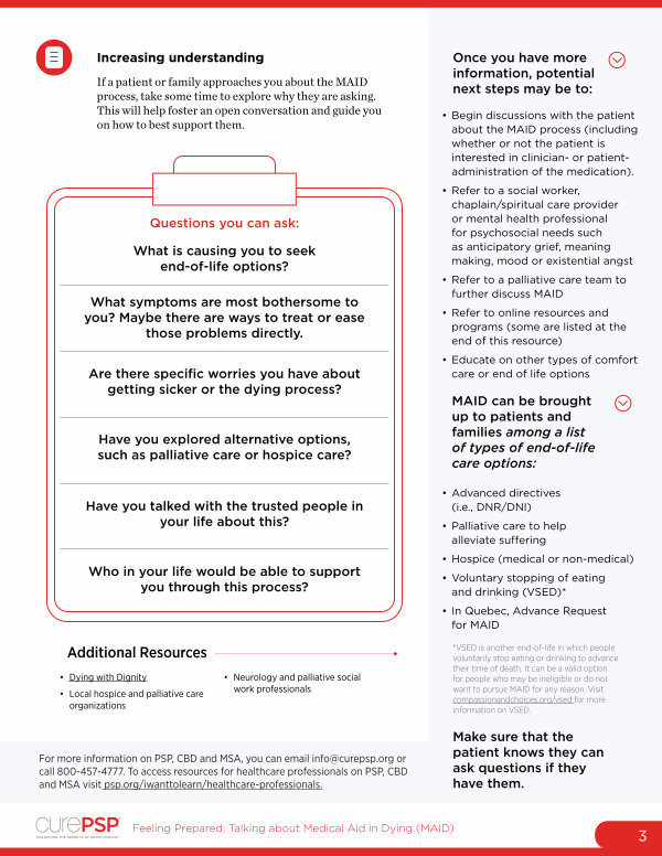 MAID can be brought up to patients and families among a list of types of end-of-life care options: