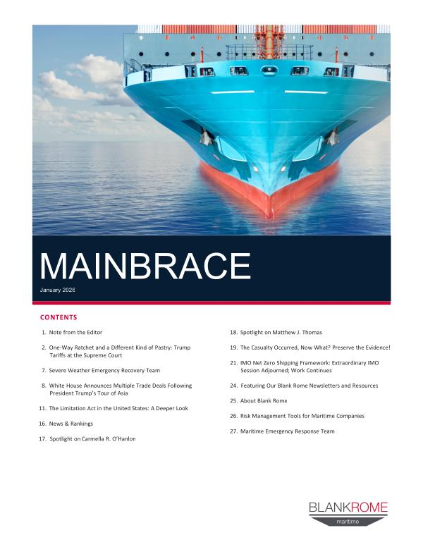 24. Featuring Our Blank Rome Newsletters and Resources 25. About Blank Rome 26. Risk Management Tools for Maritime Companies 27. Maritime Emergency Response Team