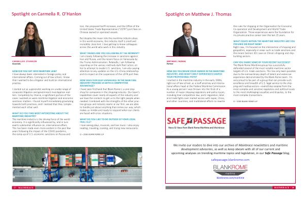 HOW DID YOU GET INTO MARITIME LAW? I have always been interested in foreign policy and international affairs. Coming out of law school, I knew that I wanted to be a litigator and build an international practice.