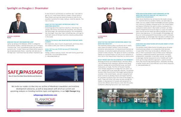Blank Rome Attorneys and Practices Highly Ranked in The Legal 500 United States 2025 Blank Rome’ s Maritime group and attorneys have been highly ranked and recommended in The Legal 500 United States 2025. Researchers at The Legal 500 conduct annual, in-depth market research and gather information from individual law firms as well as feedback from peers and clients to form an objective analysis and prepare comprehensive rankings and editorial of the U. S. legal market. Read More »