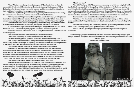 “Yes it is! You know it is!” Damien was screaming now. But was only half at Mrs Vanderkin. It was also half at him, yelling at him for being so foolish and wasting so much time feeling that intense guilt that was not his to bear. “How many times did she come home smelling like alcohol? How many times did you wake up in the middle of the night and hear her cry from the other room and roll over and pretend you could not hear it? How many times did she flinch when you touched her? She was sick.”
