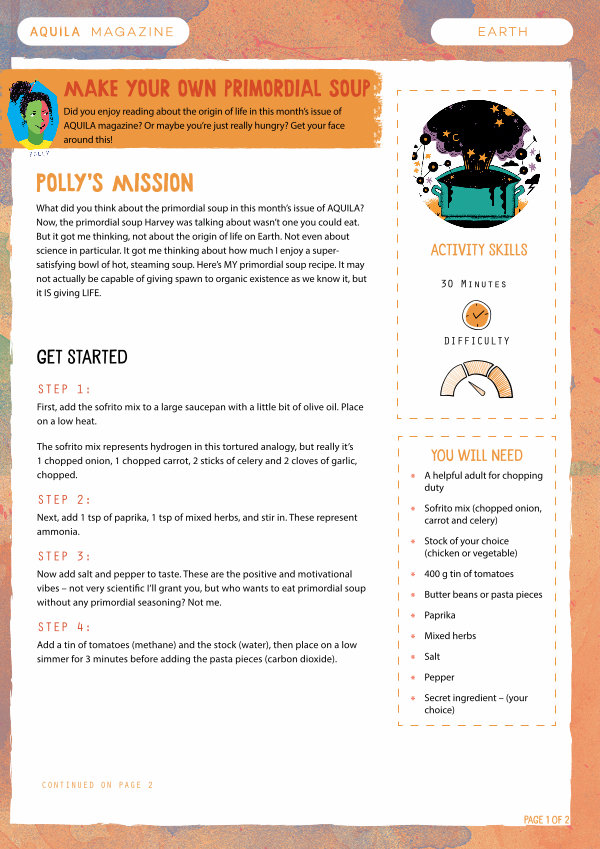 Did you enjoy reading about the origin of life in this month’ s issue of AQUILA magazine? Or maybe you’ re just really hungry? Get your face around this!