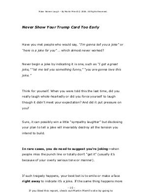 Never begin a joke by indicating it is one, such as“ I got a great joke,”“ let me tell you something funny,”“ you are gonna love this joke.”