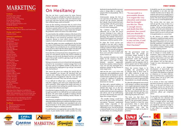 The sensible strategy would have been for the government to mandate vaccination , Kenyans understand orders better especially if the repercussions of not complying are sufficiently severe . You do not permit a national health issue to be decided by individuals , it is courting disaster .