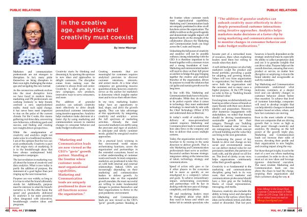 While the amalgamation of creativity and analytics might not make sense to a traditional marketer , I am of the opinion that the two can exist symbiotically . Creativity is part of the origin story of marketing . It is in the breakthrough ideas that have always underpinned bold , imaginative campaigns .