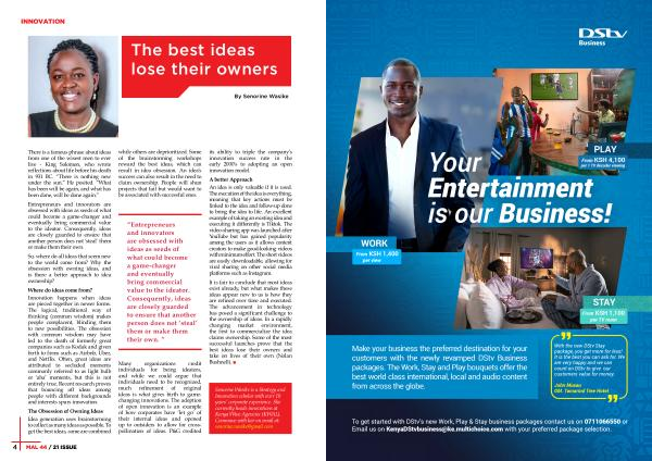 Senorine Wasike is a Strategy and Innovation scholar with over 10 years ’ corporate experience . She currently heads innovations at Kenya Wine Agencies ( KWAL ). Commune with her on email at :