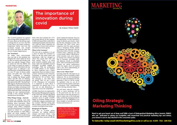 Where Is the Consumer ? Our first role as marketers is to get a sense of where the consumer is . What are the big unmet needs and motivations , what has changed in where they spend their time and their money ? There is so much great research available online , and many rapid and affordable research techniques accessible , enabled by technology . With the proliferation of mobile phones in our markets in Africa , marketers have a better opportunity than ever before to have a closer connection to the consumer . Technology is enabling speed and reducing cost . Do we know where the consumer is , and where they are going ? Once we get a sense of the whitespaces for innovation it is important to sense check if competitors are already here . If so , how can we add distinctivity or superiority versus the competition ?