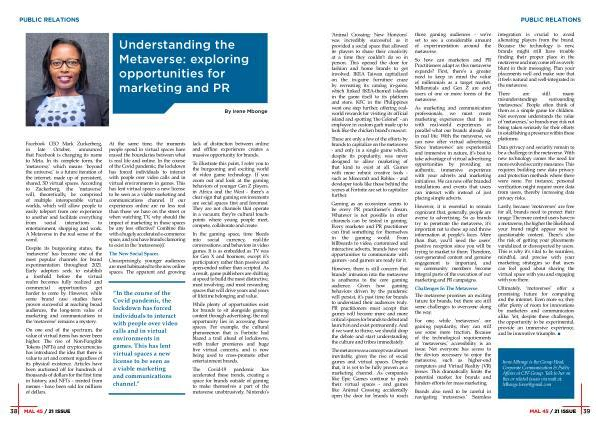 Understanding the Metaverse : exploring opportunities for marketing and PR