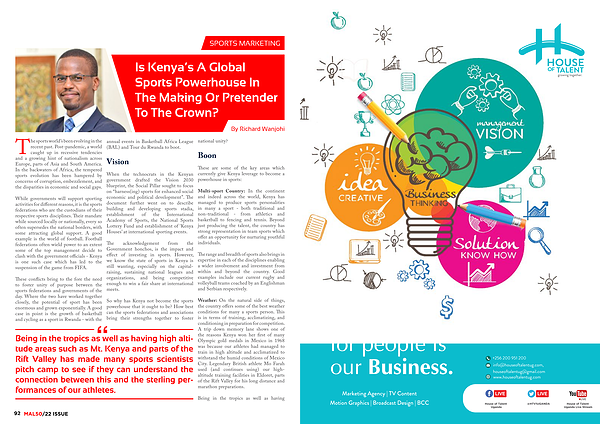 These are some of the key areas which currently give Kenya leverage to become a powerhouse in sports :