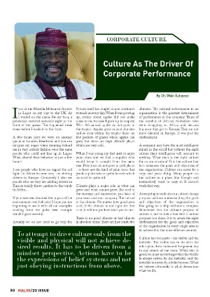 A company may have the most intelligent minds in the world but without the right culture their intelligence will amount to nothing . What then is the right culture for an organization ? It is the culture that best enhances the goals and objectives of the organization . Culture can never be a copy and paste thing . Many people see the culture in a place like Google and instinctively want to copy it . It doesn ' t work that way .