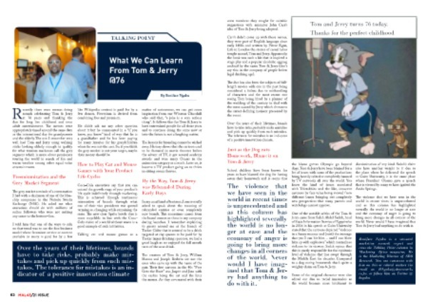 The violence that we have seen in the world in recent times is unprecedented and as this column has highlighted severally the world is no longer at ease and the economy of anger is going to bring more changes in all corners of the world . Never would I have imagined that Tom & Jerry had anything to do with it .