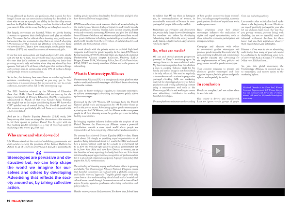 We work closely with the private sector to establish high-level corporate leadership for gender equality . In this case , UN Women Kenya has joined 193 UN Member States and launched a national Unstereotype Alliance chapter . Safaricom , Unilever , EABL / Diageo , Kantar , MSK , Marketing Africa , Inua Dada Foundation , KAM , AWEP are already members . Others are in the process of onboarding .