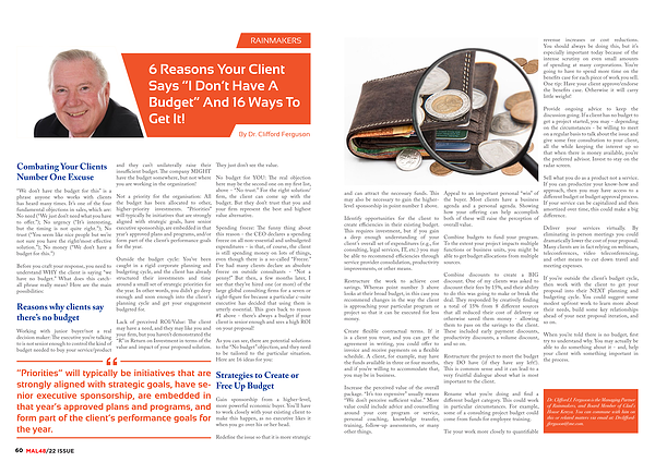 6 Reasons Your Client Says “ I Don ’ t Have A Budget ” And 16 Ways To Get It !