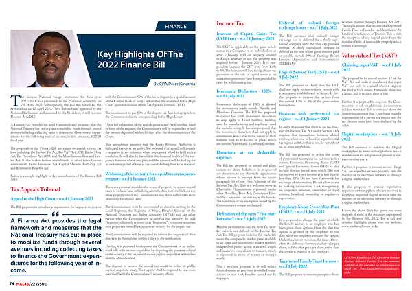 I trust the above draft has given you some snippets of some of the measures as proposed in the Finance Bill , 2022 . For a full and detailed highlight , please visit our website , www . resoluteadvisory . co . ke .