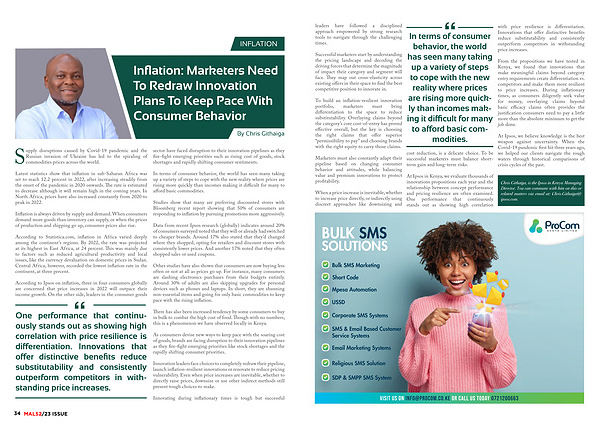 At Ipsos in Kenya , we evaluate thousands of innovations propositions each year and the relationship between concept performance and pricing resilience are often examined . One performance that continuously stands out as showing high correlation with price resilience is differentiation . Innovations that offer distinctive benefits reduce substitutability and consistently outperform competitors in withstanding price increases .