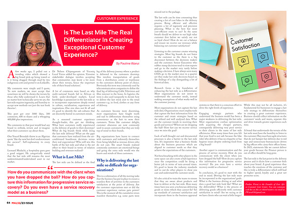 While this may not be all inclusive , it ’ s fundamental for businesses to engage a last mile strategy to differentiate themselves in creating a great customer experience . Business should collect information on the customers ’ needs and wants , separate this and drive towards greater experiences each time .