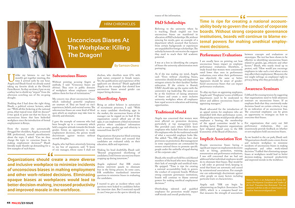 Despite unconscious biases having a significant impact on employment decisions such as hiring , promotion , training , remuneration and performance evaluations , I was still concerned that we had not addressed what individual employees would do to eliminate their biases . That would be a tall order at personal level , keeping in mind that biases are automatic and caused by unintentional associations . For example one can unknowingly discriminate against other people on many factors including particular traits or characteristics .