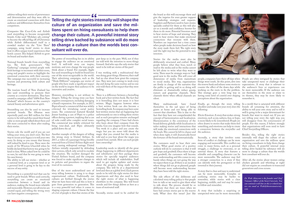 Besides this , telling the right stories internally will shape the culture of an organization and save the millions spent on hiring consultants to help them change their culture . A powerful internal story telling drive backed by substance will do more to change a culture than the worlds best consultant will ever do .