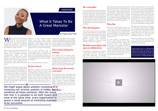 Poppy Lydia Sello is is a Botswana based strategic-thinking Communications and Marketing professional adept at written and oral communications to meet specific needs , enhance perception and drive change . You can commune with her via email at : Poppylsello @ gmail . com .