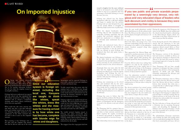 Ochieng was reminiscing on his school days and wondered why he was never punished although in truth he may have been cheeky but he actually had not done anything wrong while both the chaplain and the deputy headmaster never addressed his dilemma .