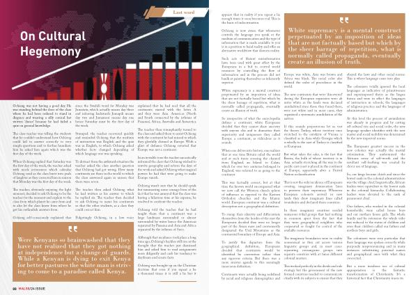 Ochieng was brought up on the Christian doctrine that even if you repeat a lie a thousand times it is still a lie but it