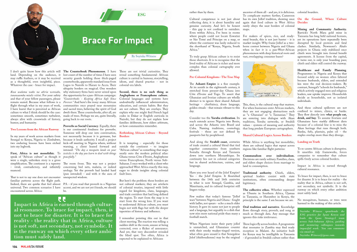 This, then, is the cultural map that matters. For when businesses enter African markets, they are not engaging abstractions such as“ a Ghanaian” or“ a Tanzanian.” They are entering into dialogue with Akan traditions, Yoruba networks, or Swahili values- systems of meaning and authority that long predate European cartographers.