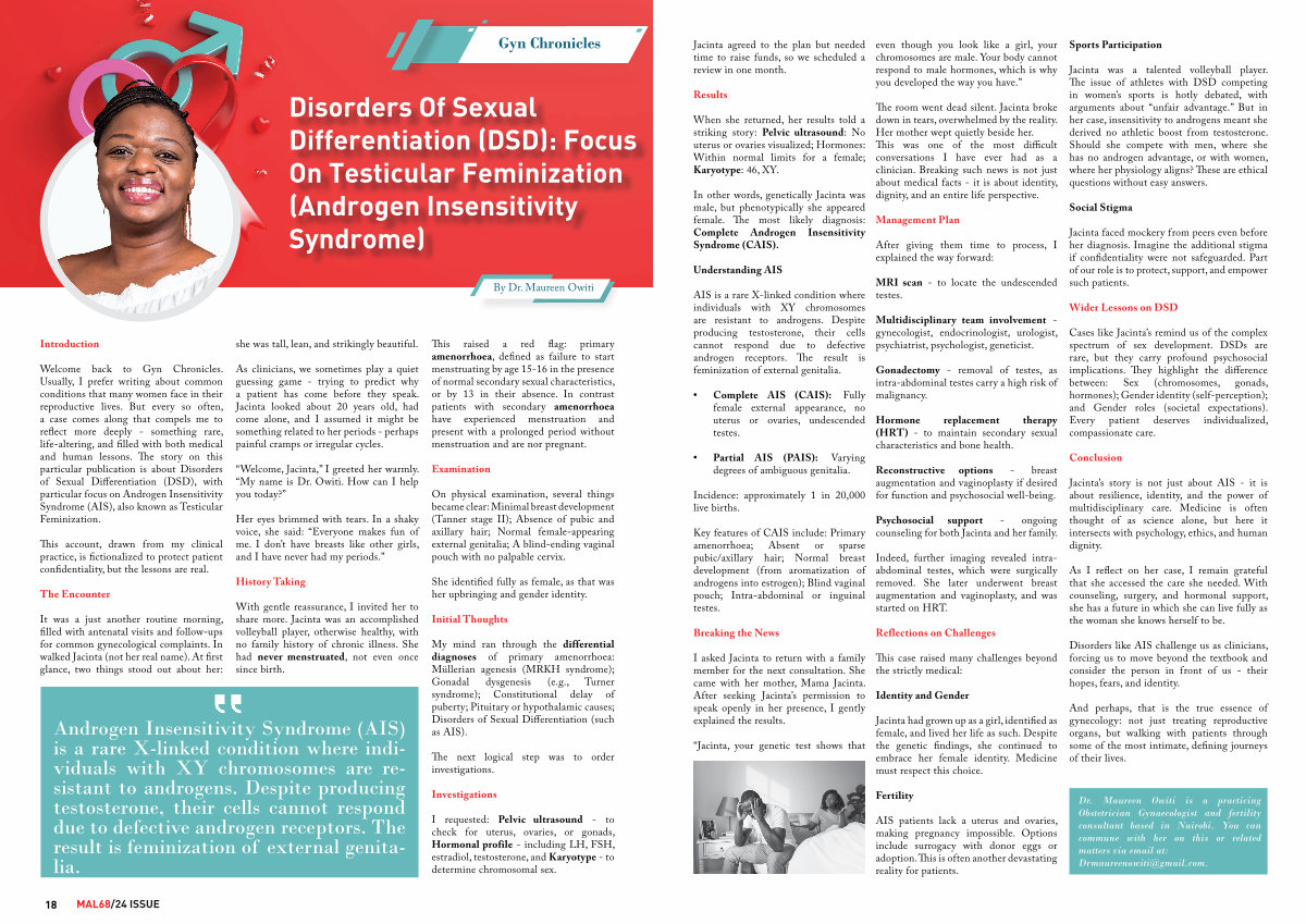 Welcome back to Gyn Chronicles. Usually, I prefer writing about common conditions that many women face in their reproductive lives. But every so often, a case comes along that compels me to reflect more deeply- something rare, life-altering, and filled with both medical and human lessons. The story on this particular publication is about Disorders of Sexual Differentiation( DSD), with particular focus on Androgen Insensitivity Syndrome( AIS), also known as Testicular Feminization.