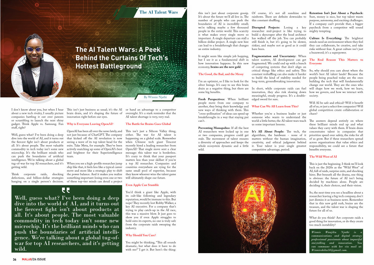 So, the next time you see a headline about a researcher leaving a big tech company, don ' t just dismiss it as business news. Remember that in this new gold rush, brains are the treasure, and the talent war is shaping the future for all of us.