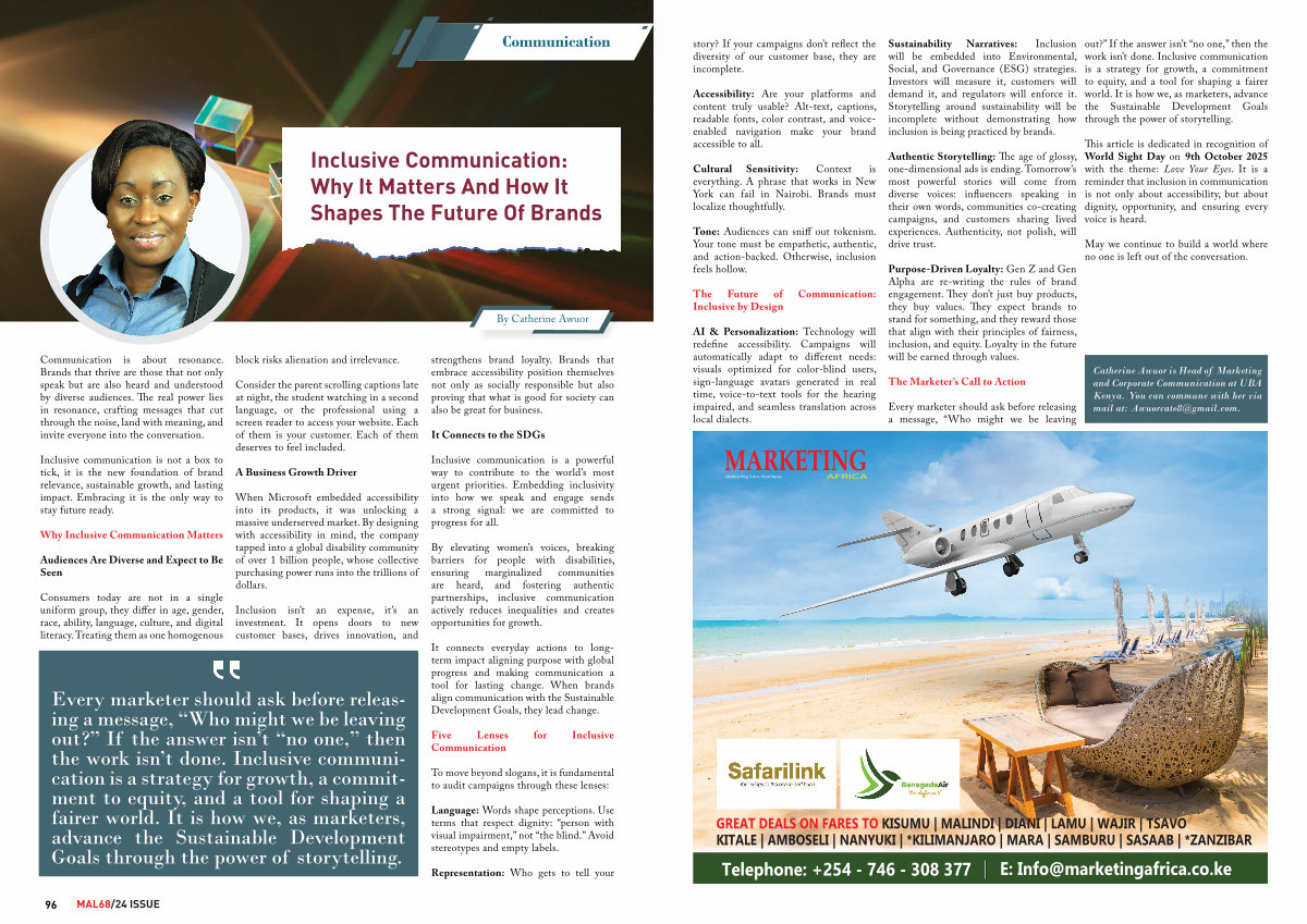 Every marketer should ask before releasing a message,“ Who might we be leaving out?” If the answer isn’ t“ no one,” then the work isn’ t done. Inclusive communication is a strategy for growth, a commitment to equity, and a tool for shaping a fairer world. It is how we, as marketers, advance the Sustainable Development Goals through the power of storytelling. strengthens brand loyalty. Brands that embrace accessibility position themselves not only as socially responsible but also proving that what is good for society can also be great for business.
