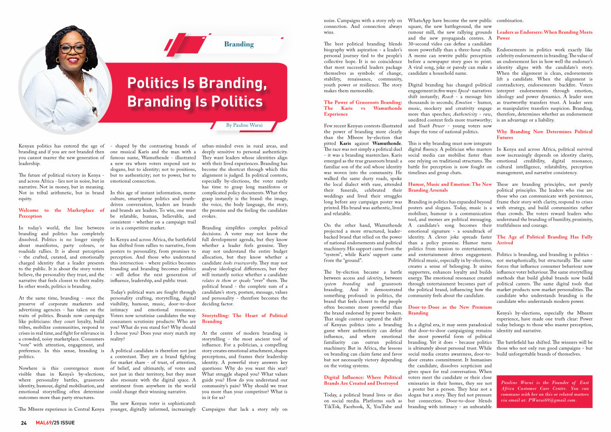 In Kenya and across Africa, the battlefield has shifted from rallies to narrative, from posters to personality, from promises to perception. And those who understand this intersection- where politics becomes branding and branding becomes politics- will define the next generation of influence, leadership, and public trust.