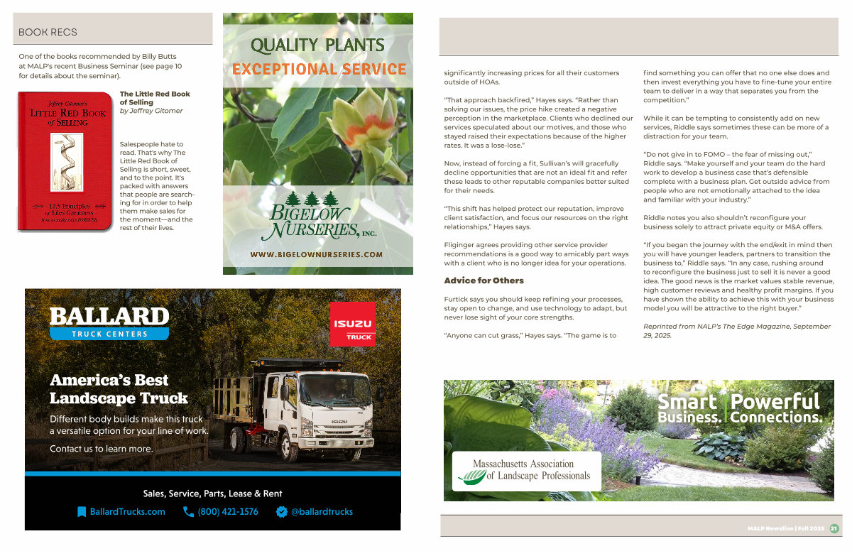 “ Anyone can cut grass,” Hayes says.“ The game is to find something you can offer that no one else does and then invest everything you have to fine-tune your entire team to deliver in a way that separates you from the competition.”