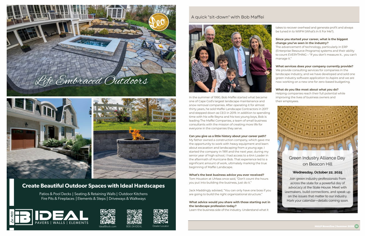 What advice would you share with those starting out in the landscape profession today? Learn the business side of the industry. Understand what it