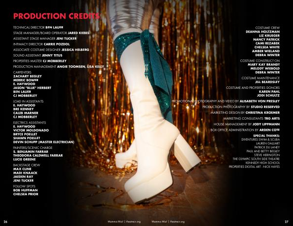 COSTUME AND PROPERTIES DONORS KAREN PAHL JODI SCHULTZ