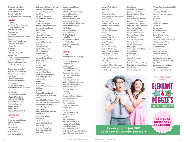 Whealen Koontz and Laura LeBuhn Koontz Christina and Kurt Kroemer Justin and Meghann Krogmann Kellie Lala Bob Landis Terri LeBlanc Katrina and Les Garner Thea Leslie Doriene Loomis Ann and Mark Lorenz Brian and Kelly Macek Dick and Nancy Mahany Pam Mahany Dennis and Rebecca McCollough Michael and Jane Melloy Larry and Kathy Miller Elizabeth Mitchell Kevin Moore Janelle and Tyson Morio David and Lisa Morris Nancy and Steve Mortimore Mike and Melanie Moseley Iris Muchmore and Mark Ogden Bryan Mullen Margaret and Ronald Nelson Don and Marty Norton Steve and Mary Odegaard