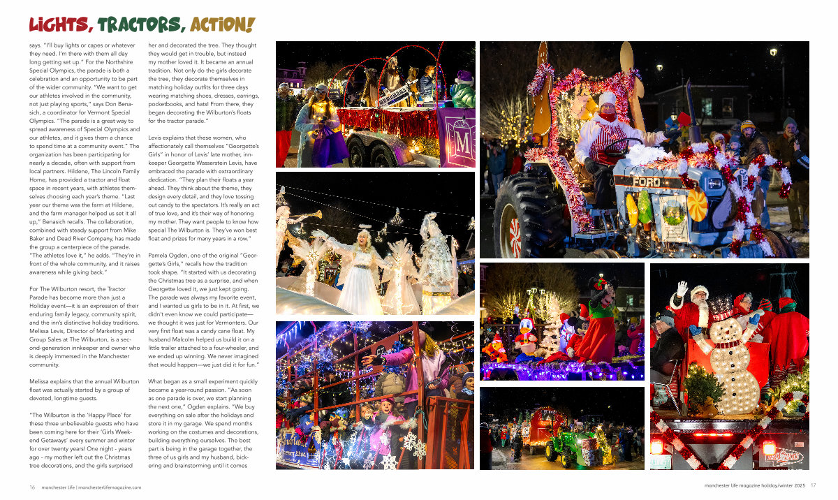 For The Wilburton resort, the Tractor Parade has become more than just a Holiday event— it is an expression of their enduring family legacy, community spirit, and the inn’ s distinctive holiday traditions. Melissa Levis, Director of Marketing and Group Sales at The Wilburton, is a second-generation innkeeper and owner who is deeply immersed in the Manchester community.