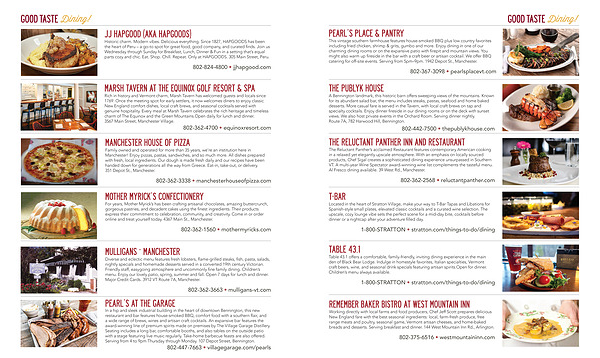 Diverse and eclectic menu features fresh lobsters, flame-grilled steaks, fish, pasta, salads, nightly specials and homemade desserts served in a converted 19th century Victorian. Friendly staff, easygoing atmosphere and uncommonly fine family dining. Children’ s menu. Enjoy our lovely patio, spring, summer and fall. Open 7 days for lunch and dinner. Major Credit Cards. 3912 VT Route 7A, Manchester.