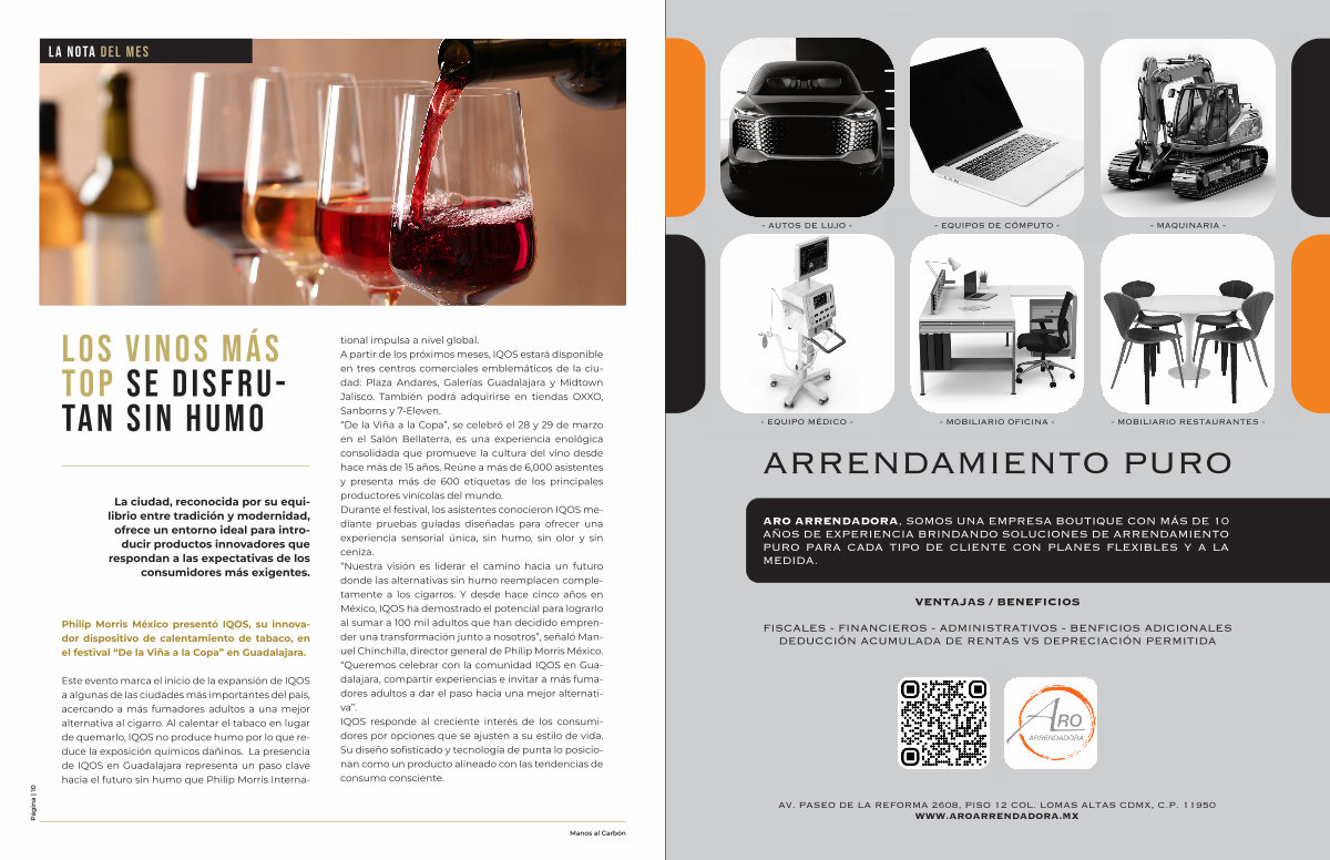 Este evento marca el inicio de la expansión de IQOS a algunas de las ciudades más importantes del país, acercando a más fumadores adultos a una mejor alternativa al cigarro. Al calentar el tabaco en lugar de quemarlo, IQOS no produce humo por lo que reduce la exposición químicos dañinos. La presencia de IQOS en Guadalajara representa un paso clave hacia el futuro sin humo que Philip Morris International impulsa a nivel global. A partir de los próximos meses, IQOS estará disponible en tres centros comerciales emblemáticos de la ciudad: Plaza Andares, Galerías Guadalajara y Midtown Jalisco. También podrá adquirirse en tiendas OXXO, Sanborns y 7-Eleven.“ De la Viña a la Copa”, se celebró el 28 y 29 de marzo en el Salón Bellaterra, es una experiencia enológica consolidada que promueve la cultura del vino desde hace más de 15 años. Reúne a más de 6,000 asistentes y presenta más de 600 etiquetas de los principales productores vinícolas del mundo. Durante el festival, los asistentes conocieron IQOS mediante pruebas guiadas diseñadas para ofrecer una experiencia sensorial única, sin humo, sin olor y sin ceniza.“ Nuestra visión es liderar el camino hacia un futuro donde las alternativas sin humo reemplacen completamente a los cigarros. Y desde hace cinco años en México, IQOS ha demostrado el potencial para lograrlo al sumar a 100 mil adultos que han decidido emprender una transformación junto a nosotros”, señaló Manuel Chinchilla, director general de Philip Morris México.“ Queremos celebrar con la comunidad IQOS en Guadalajara, compartir experiencias e invitar a más fumadores adultos a dar el paso hacia una mejor alternativa”. IQOS responde al creciente interés de los consumidores por opciones que se ajusten a su estilo de vida. Su diseño sofisticado y tecnología de punta lo posicionan como un producto alineado con las tendencias de consumo consciente.