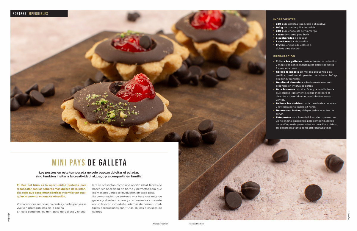 Preparaciones sencillas, coloridas y participativas se vuelven protagonistas en la cocina. En este contexto, los mini pays de galleta y chocolate se presentan como una opción ideal: fáciles de hacer, sin necesidad de horno y perfectos para que los más pequeños se involucren en cada paso. Su combinación de texturas— la base crujiente de galleta y el relleno suave y cremoso— los convierte en un favorito inmediato, además de permitir múltiples decoraciones con frutas, dulces o chispas de colores.