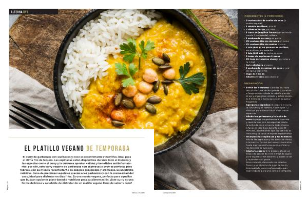 El curry de garbanzos con espinacas y coco es reconfortante y nutritivo , ideal para el clima frío de febrero . Las espinacas están disponibles durante todo el invierno y las especias como el curry y la cúrcuma aportan calidez y beneficios antiinflamatorios , por ello , este curry vegano de garbanzos con espinacas y coco es perfecto para febrero , con su mezcla reconfortante de sabores especiados y cremosos . Es un platillo nutritivo , lleno de proteínas vegetales gracias a los garbanzos y con la cremosidad del coco , ideal para disfrutar en días fríos . Es una receta vegana , perfecta para aquellos que buscan opciones plant-based y nutritivas para su alimentación . ¡ Este curry es una forma deliciosa y saludable de disfrutar de un platillo vegano lleno de sabor y color !