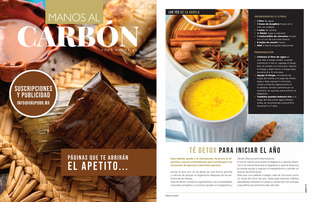 Iniciar el año con un té detox es una forma sencilla y natural de apoyar al organismo después de los excesos de las fiestas. Este té detox combina ingredientes con propiedades naturales: jengibre y cúrcuma: ayudan a la digestión y tienen efectos antiinflamatorios. El limón estimula el sistema digestivo y aporta vitamina C; la menta favorece la digestión y aporta frescura; la canela ayuda a regular el metabolismo y brinda un aroma reconfortante. Más que una bebida milagro, este té funciona como un ritual de inicio de año, ideal para retomar hábitos saludables, hidratar el cuerpo y comenzar con energía y equilibrio los primeros días del año.