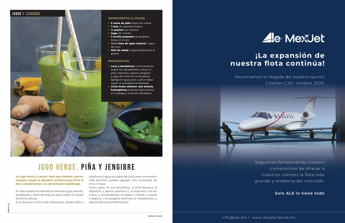 En esta ocasión te traemos un delicioso jugo, sencillo, equilibrado y lleno de frescura para cuidar el cuerpo de forma natural. Si lo quieres mucho más refrescante, añade hielo o sustituye el agua por agua de coco, para una versión más saciante, puedes agregar una cucharada de chía o linaza. Como parte de sus beneficios, la piña favorece la digestión y aporta vitamina C; la espinaca: rica en hierro y antioxidantes; el pepino hidrata y ayuda a depurar y el jengibre estimula el metabolismo y aporta efecto antiinflamatorio.