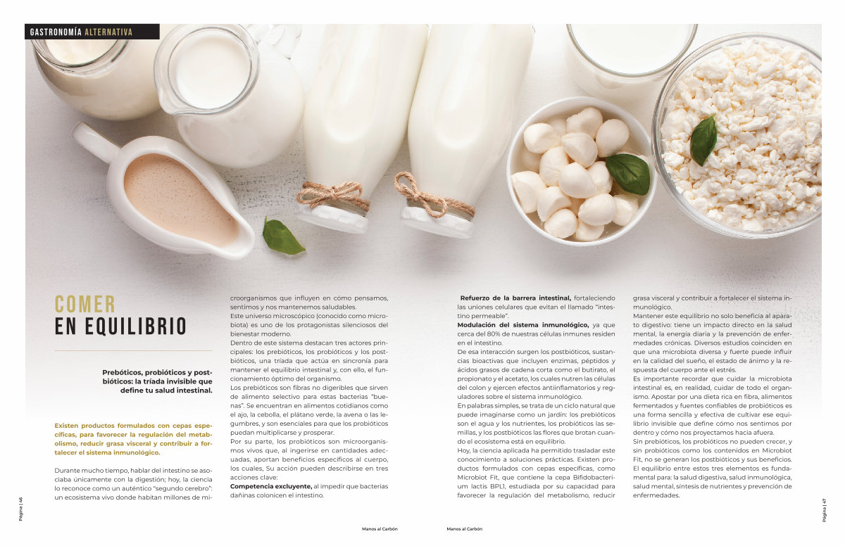 Refuerzo de la barrera intestinal, fortaleciendo las uniones celulares que evitan el llamado“ intestino permeable”. Modulación del sistema inmunológico, ya que cerca del 80 % de nuestras células inmunes residen en el intestino. De esa interacción surgen los postbióticos, sustancias bioactivas que incluyen enzimas, péptidos y ácidos grasos de cadena corta como el butirato, el propionato y el acetato, los cuales nutren las células del colon y ejercen efectos antiinflamatorios y reguladores sobre el sistema inmunológico. En palabras simples, se trata de un ciclo natural que puede imaginarse como un jardín: los prebióticos son el agua y los nutrientes, los probióticos las semillas, y los postbióticos las flores que brotan cuando el ecosistema está en equilibrio. Hoy, la ciencia aplicada ha permitido trasladar este conocimiento a soluciones prácticas. Existen productos formulados con cepas específicas, como Microbiot Fit, que contiene la cepa Bifidobacterium lactis BPL1, estudiada por su capacidad para favorecer la regulación del metabolismo, reducir grasa visceral y contribuir a fortalecer el sistema inmunológico. Mantener este equilibrio no solo beneficia al aparato digestivo: tiene un impacto directo en la salud mental, la energía diaria y la prevención de enfermedades crónicas. Diversos estudios coinciden en que una microbiota diversa y fuerte puede influir en la calidad del sueño, el estado de ánimo y la respuesta del cuerpo ante el estrés. Es importante recordar que cuidar la microbiota intestinal es, en realidad, cuidar de todo el organismo. Apostar por una dieta rica en fibra, alimentos fermentados y fuentes confiables de probióticos es una forma sencilla y efectiva de cultivar ese equilibrio invisible que define cómo nos sentimos por dentro y cómo nos proyectamos hacia afuera. Sin prebióticos, los probióticos no pueden crecer, y sin probióticos como los contenidos en Microbiot Fit, no se generan los postbióticos y sus beneficios. El equilibrio entre estos tres elementos es fundamental para: la salud digestiva, salud inmunológica, salud mental, síntesis de nutrientes y prevención de enfermedades.