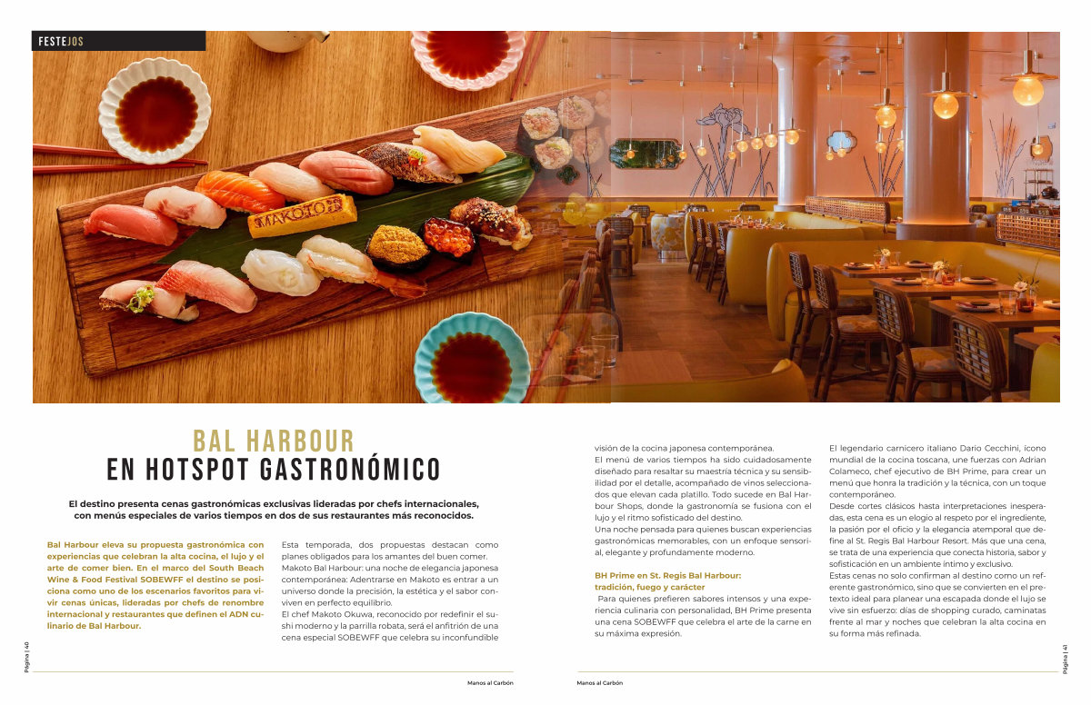 Bal Harbour eleva su propuesta gastronómica con experiencias que celebran la alta cocina, el lujo y el arte de comer bien. En el marco del South Beach Wine & Food Festival SOBEWFF el destino se posiciona como uno de los escenarios favoritos para vivir cenas únicas, lideradas por chefs de renombre internacional y restaurantes que definen el ADN culinario de Bal Harbour.